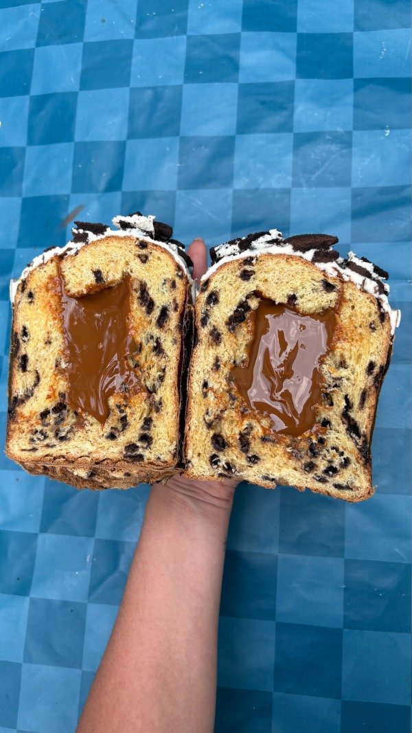 Relleno de dulce de leche bañado en choco blanco y oreos. Pesa 650 gramos.